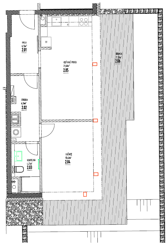 | pokoj + kk: | 21 m² |