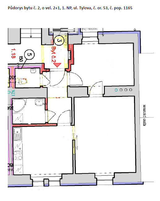 Nájem 3 bytů typu 2+1, které se nachází v 1. NP, 3. NP a 4. NP (přízemí, 2. a 3. poschodí) nově zrekonstruovaného domu s výtahem.